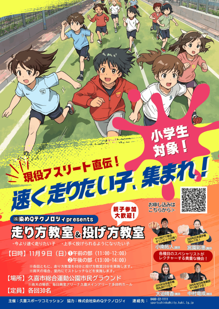 11/9 陸上教室「染めQアスリートACADEMY」を開催します!