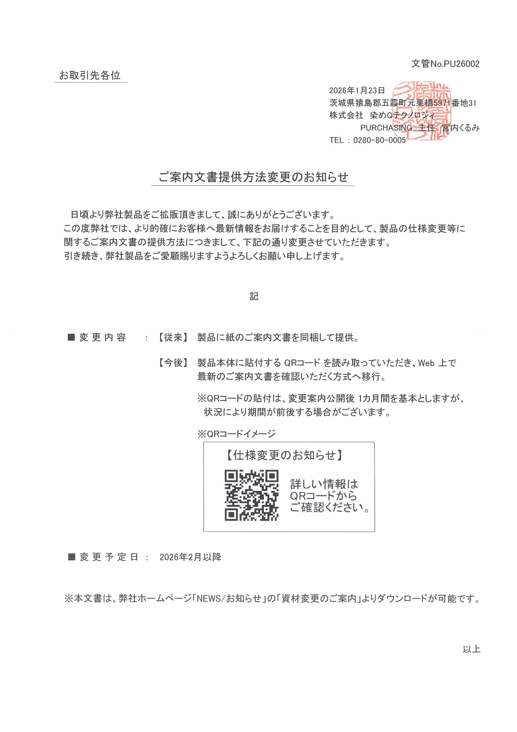 製品の仕様変更等に関するご案内文書提供方法の変更について