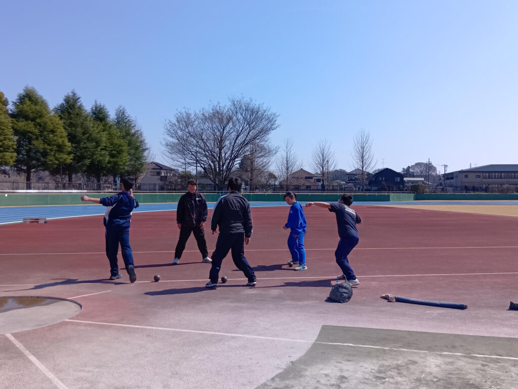 入念なウォーミングアップの後、短距離教室砲丸投・円盤投教室に分かれ