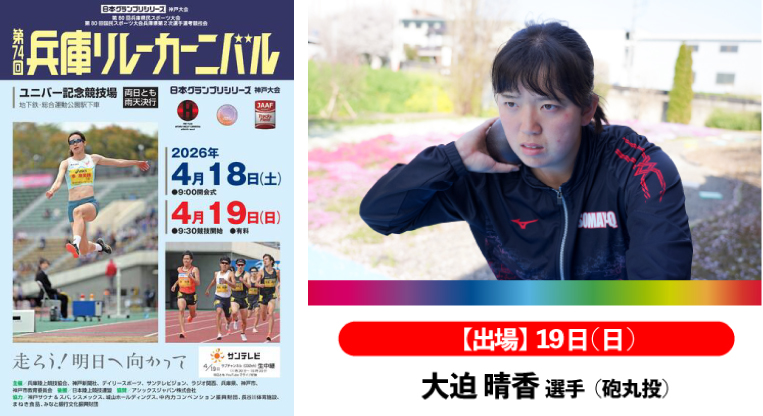 「第74回兵庫リレーカーニバル」に砲丸投・大迫選手が出場します!