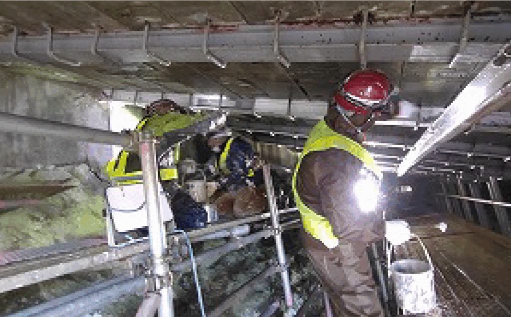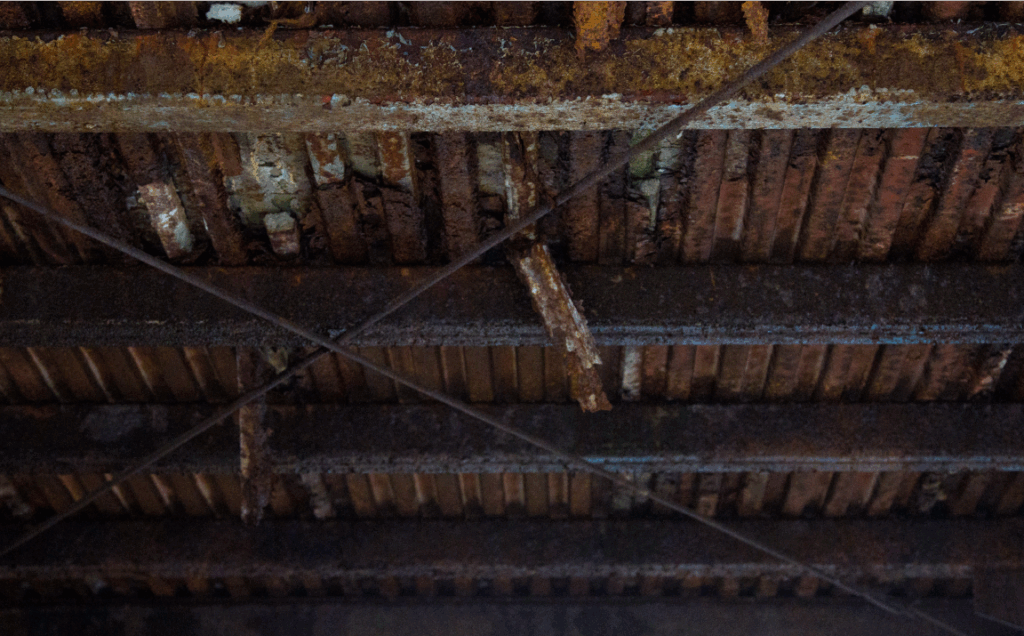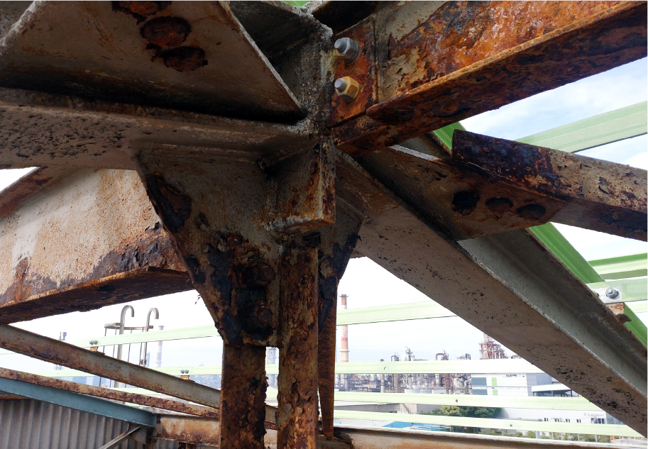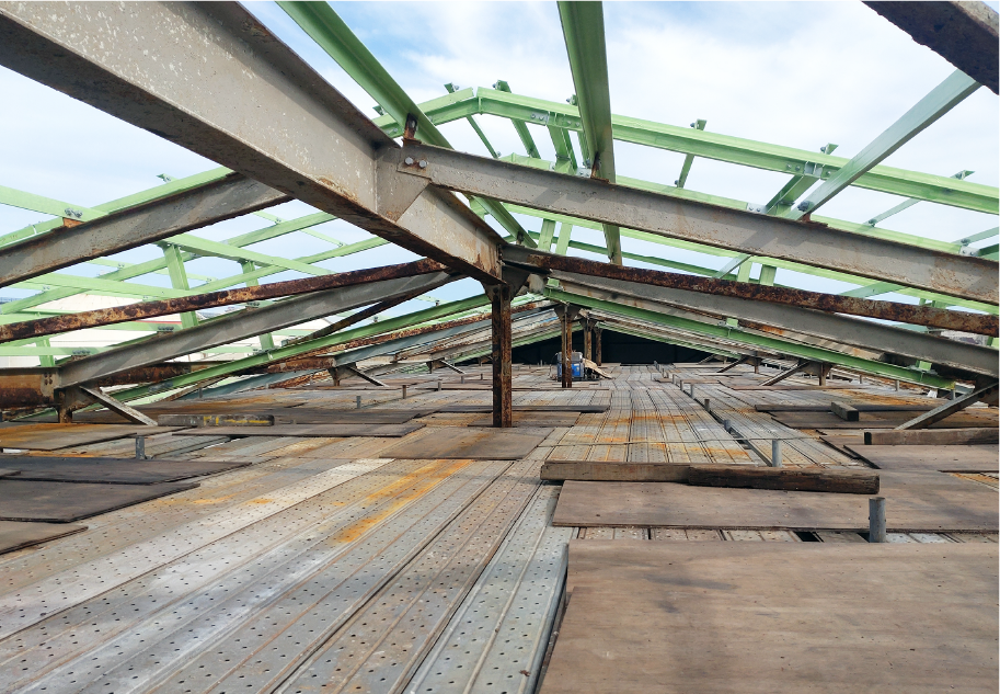 広範囲に渡る天井のサビや腐食した支柱などを補修・補強。