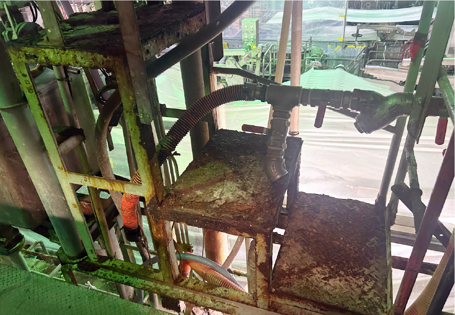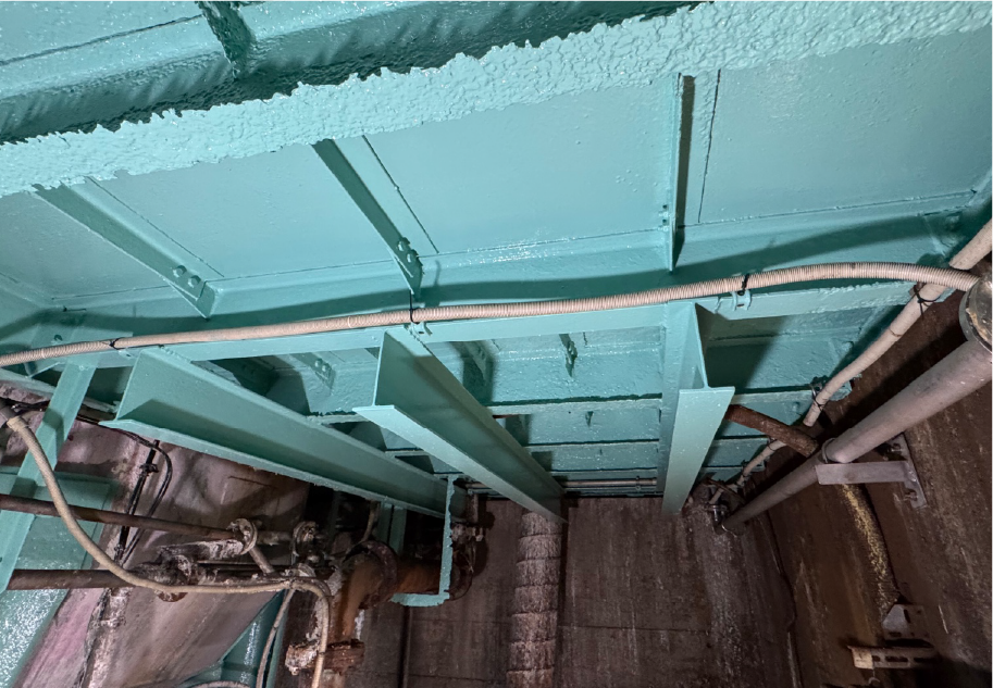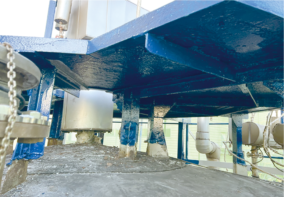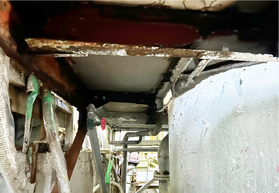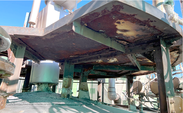 従来なら稼働を止めて補修するしかなかった。しかし、染めQなら上にあるタンクや設備もそのままに施工可能。短工程なので稼働への影響を最小限に抑えて施工可能。