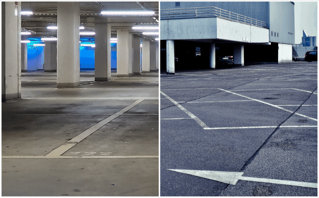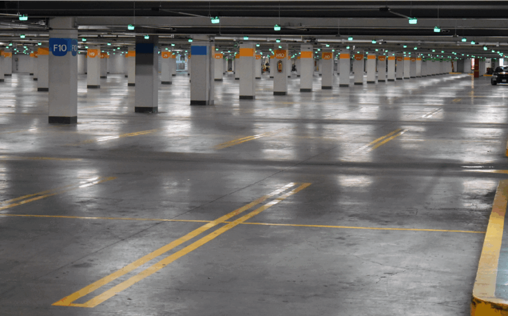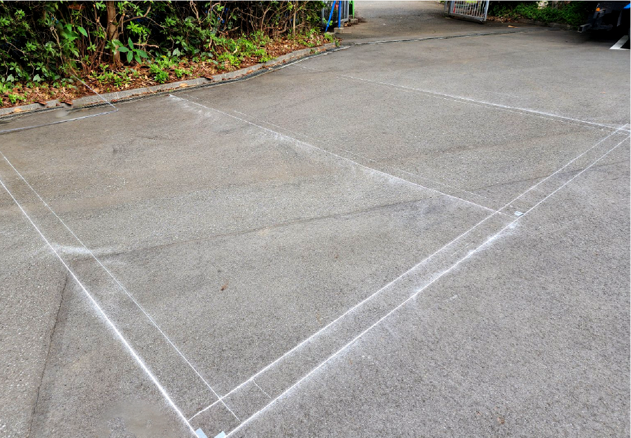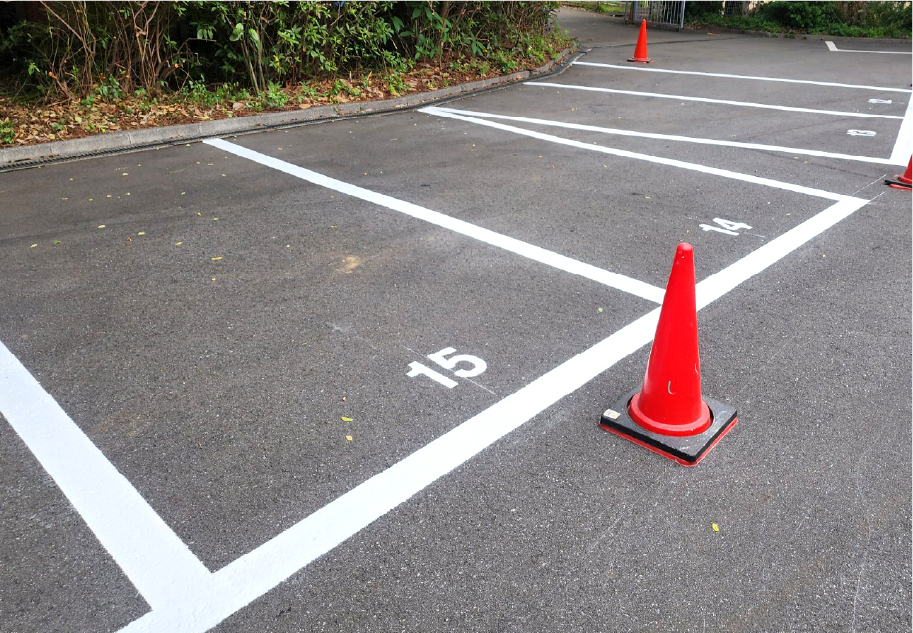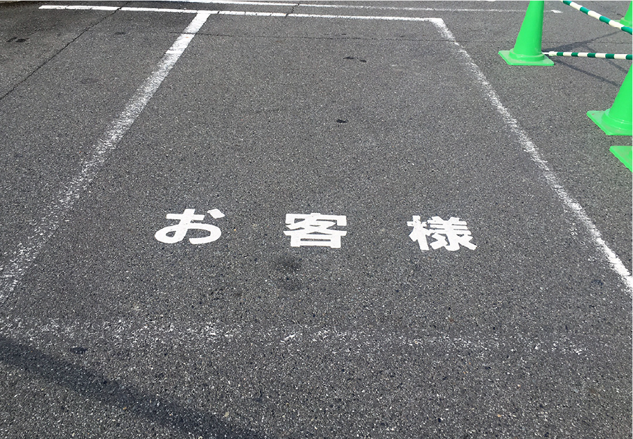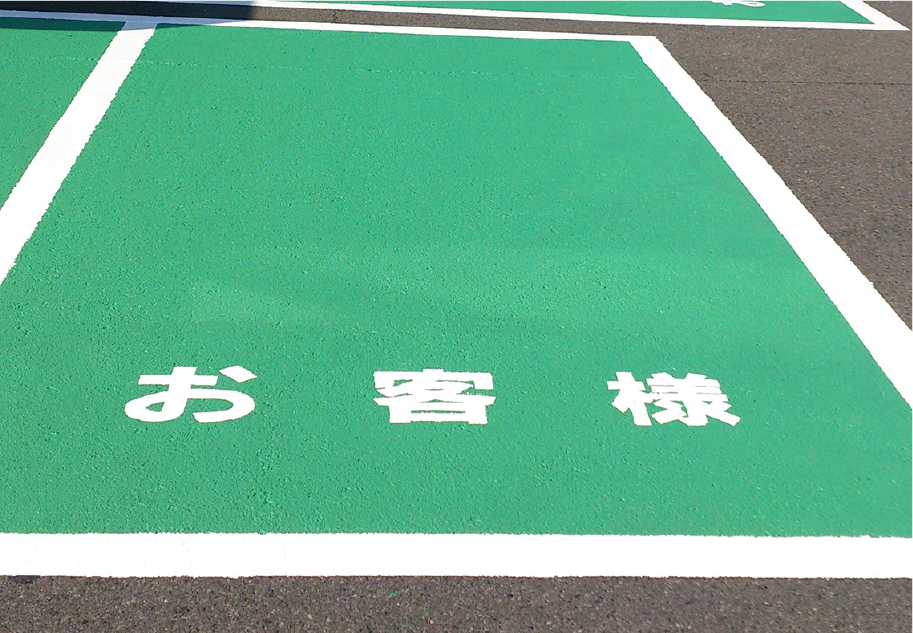 駐車場の剥がれてしまったラインや数字なども美しく蘇る。コンクリートもアスファルトにも施工可能。